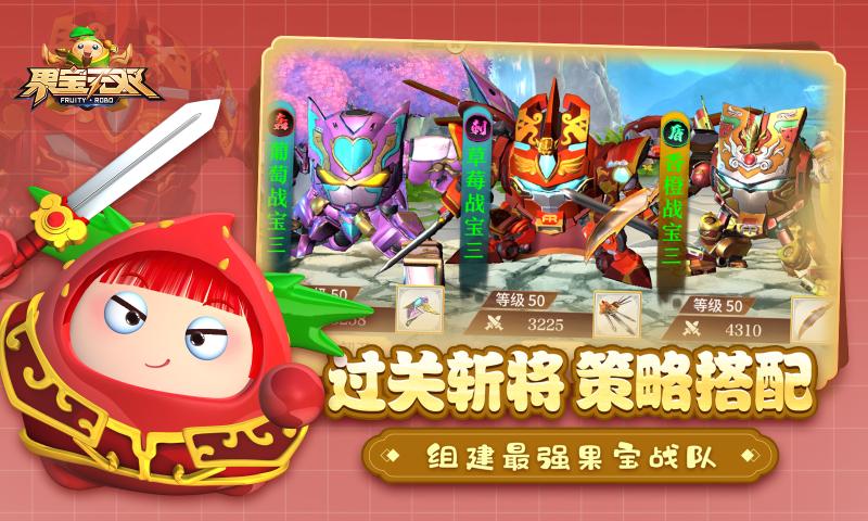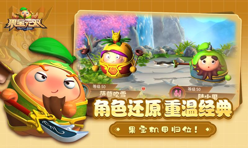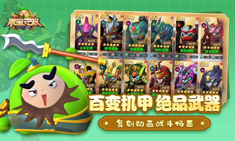 果宝无双游戏来自果宝特攻特别正版授权制作,果宝无双也是果宝三国团队的新作品,作为果宝特攻战队的指挥官,游戏中能够体验收集、养成、升级机甲,搭配强力技能和阵容,与其他玩家进行竞技和冒险。