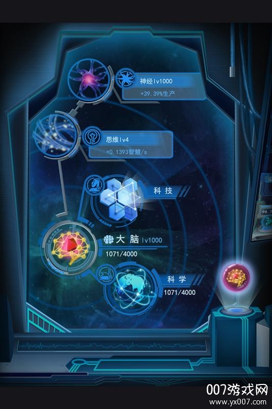 科幻背景下的放置类游戏。作为一名世界的经营者,进化物种,探索星系,发展科学,研发暗能力。 物种进化 从最微小的粒子开始,通过合成,复制与加速,一步步演变成DNA,草履虫,大白鲨! 星系探索 从发现最细小的尘埃开始,到卫星,行星,太阳系,甚至宇宙! 发展科学 提升大脑容量,延展神经系统,用强大的智慧发展科学。 研发暗能力 如何发现神秘的暗物质?暗物质又有何用处?宇宙中还有更强大的力量等着我们去挖掘。
