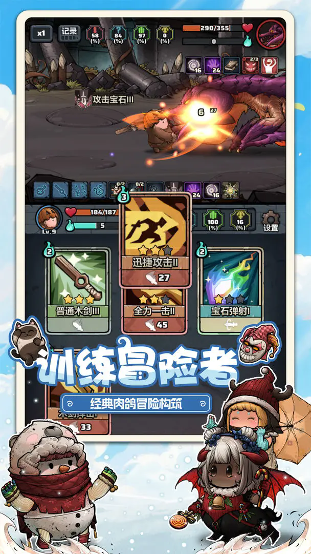 2、各种卡牌技能设置,以及具有不同属性和特性的宝藏,具有随机升级选项;