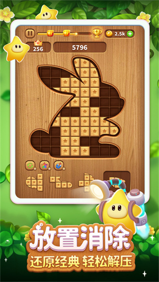 3、更有增加消除难度的完美消除玩法——萌星解谜,关卡内星星摆放成各种不同的可爱造型,造型虽可爱想要消除却需要玩家开动脑筋