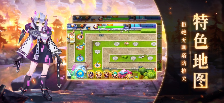 - TD塔防以一敌百:策略部署无限组合,根据英雄的特殊技能准备战斗策略,守护地球!