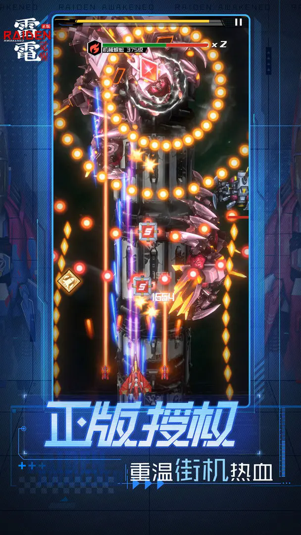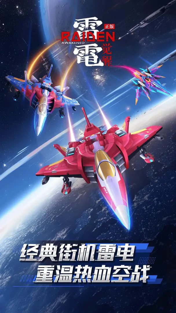 ——90年代国民街机游戏《雷电(RAIDEN)》正版授权 弹幕射击游戏起源之作《雷电(RAIDEN)》,曾在80、90年代风靡世界,造就了万人空巷的奇观,成为时代印记之一。 《雷电:觉醒》秉承IP“简单又硬核”的玩法理念,在操作简单的基础上,设计了极具挑战性的关卡机制,让你重燃年少时的热血。 ——经典双机作战,重温街机热血 《雷电:觉醒》继承了雷电经典双机玩法,你可邀请好友双机作战!同时1币=1命的玩法仍旧保留在《雷电:觉醒》中,让你重温街机1币闯关的心跳体验。 此外,《雷电:觉醒》新增空间探索、PvP火力竞技场、战备行动、位面争夺、核爆危机等诸多丰富的副本和玩法,让你闲暇时刻激战太空。 ——弹幕华丽流畅,轻松单手操作 《雷电:觉醒》采用了3D次世代美术风格, 弹幕更华丽流畅,且更具打击感。此外,作为竖版射击游戏,《雷电:觉醒》只需单手操作,1秒就可上手,尽情解压,不限场景随时随地可大战一场。