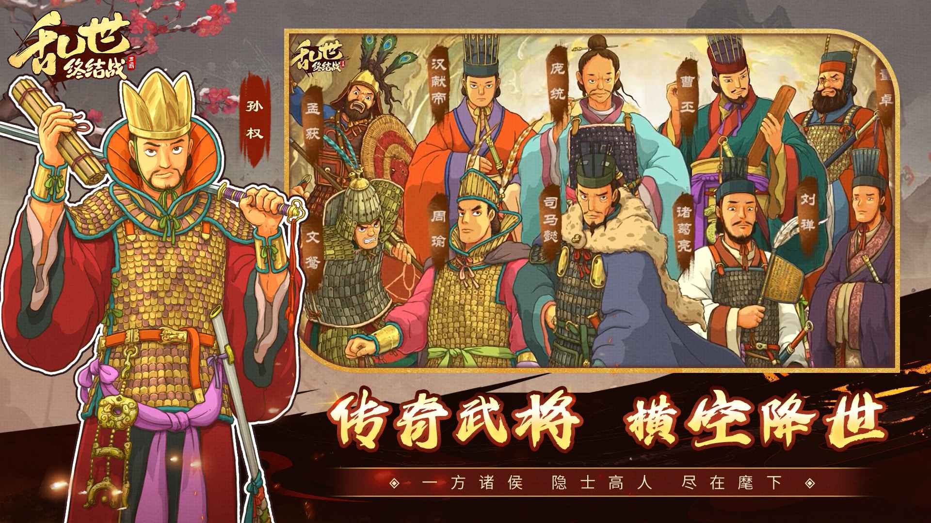 《乱世终结战》手绘涂鸦真实还原三国风貌!穿越千年历史,刻画三国英豪,呈现一个纵横幻想与史实的三国策略手游。超可爱画风 朴素才是极致!从初出茅庐到完成千秋大业,斗机略、比谋算,铺陈出一段群雄逐鹿的激烈征战。既有历史线,同时也融入了招募历史名将,派兵遣将、扩城建地,开放式大地图场景,全天候激烈国战,局势瞬息万变,多线发展,给你极致策略的国战体验!