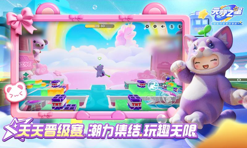 元梦之星是一款多人在线社交游戏,玩家可以在虚拟世界中与全球的玩家一起参与各种有趣的派对活动。通过该游戏,玩家可以自由定制角色形象、参加时尚秀、交流聊天、建立社交关系等,体验无限可能的派对乐趣。元梦之星提供了丰富的互动和合作玩法,让你在游戏中结识新朋友、共同创造精彩的派对时光!快来加入元梦之星,与全球的玩家一起畅享派对快乐吧!