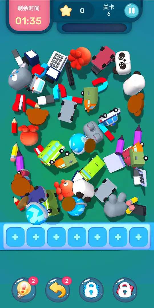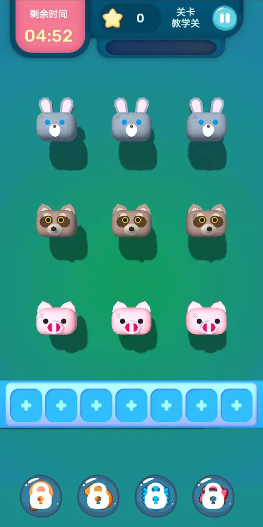 游戏挺简单的,只要找到3个一样的消除就行,然后下面的规则有点像《羊了个羊》不能满了。