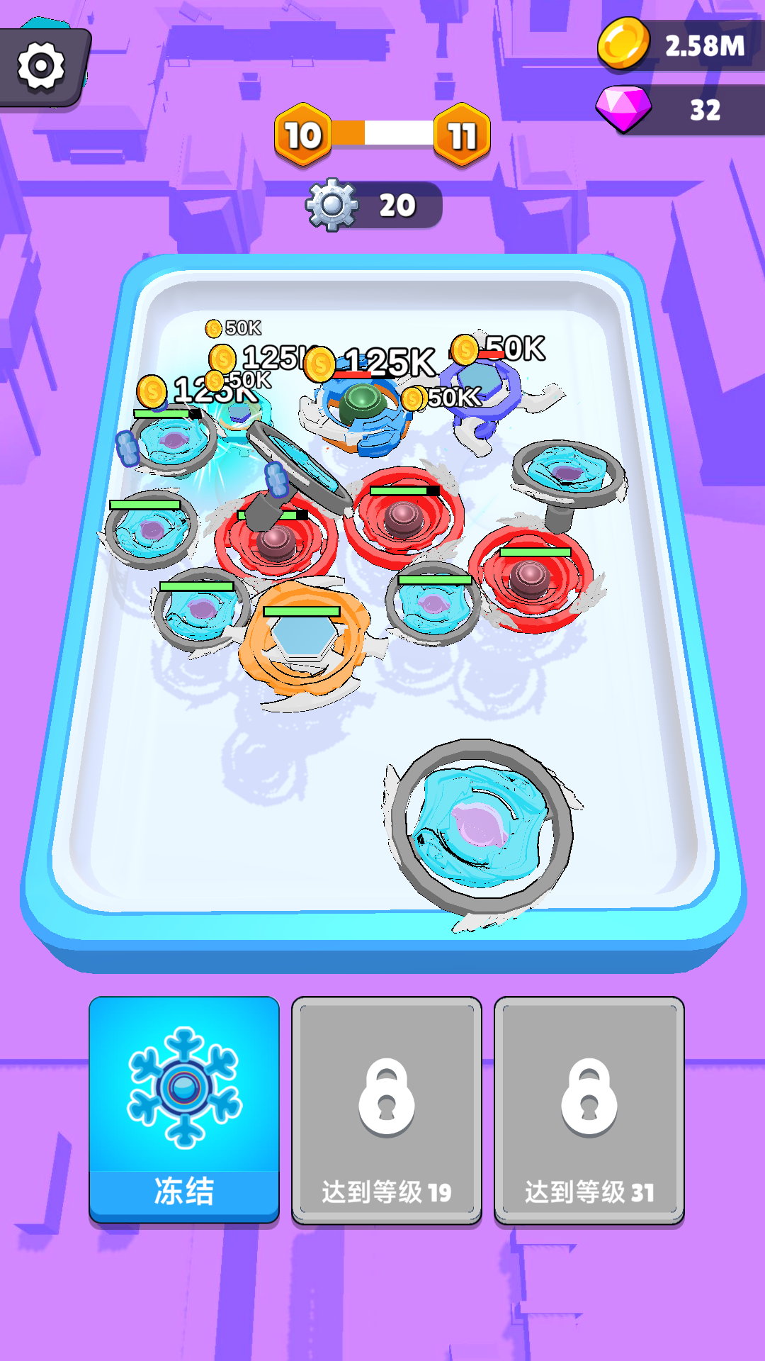 3、积极的升级,解锁更强的新陀螺,随时开启战斗,