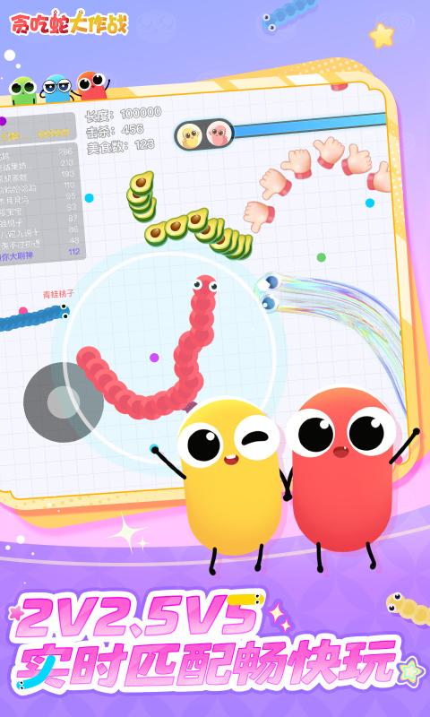 这是一款超好玩的休闲竞技游戏,不仅比拼手速,更考验你的策略!在贪吃蛇大作战的世界中,每个人在初始都化身为一条小蛇,通过不断努力变得越来越长,制霸一方!真人对战,新一代电竞手游,大神带队妹子多多!组团开黑,超畅快激情团战,随时三杀暴走超神!贪吃蛇大作战,这是一个有毒的游戏!