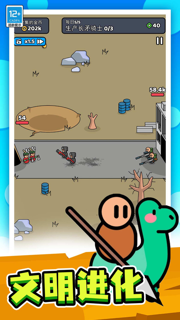 2、增加自己的肉块产生,才能让你的士兵变强,同时收集金币,快速进化;