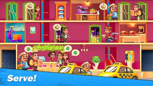 4、完成每日订单任务,积累金币与声望,解锁新楼层与豪华设施,扩大酒店规模。