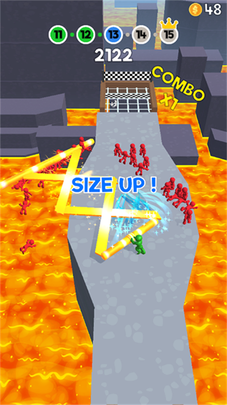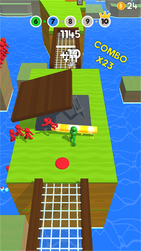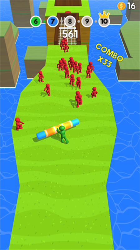 4、控制好棍子推开各种颜色的小人,到达终点很开心。