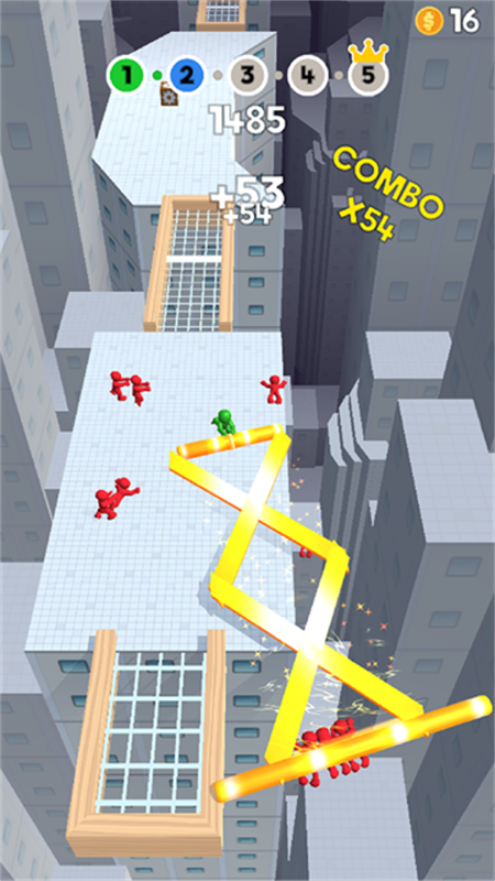 2、丰富多变的场景带来更有趣的体验,利用好地形来推掉前方的小人,争取胜利。