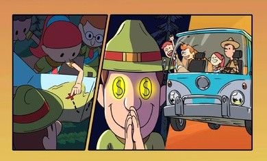 这是一款寻宝游戏,具有独特的卡通手绘风格,讲述了一群小童子军的故事。
