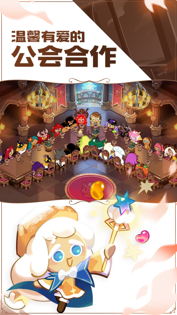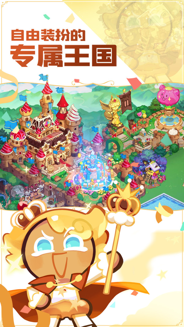 游戏中玩家将创建属于自己的王国,开垦荒地,建造生产,装点属于自己的美妙家园,让这里的饼干居民过上幸福快乐的生活。饼干们也会探索未知的大陆,在冒险中不断成长。各具魅力的饼干们将在战斗中发挥各式各样的作用,精彩绝伦的作战将有赖于玩家的智慧搭配!