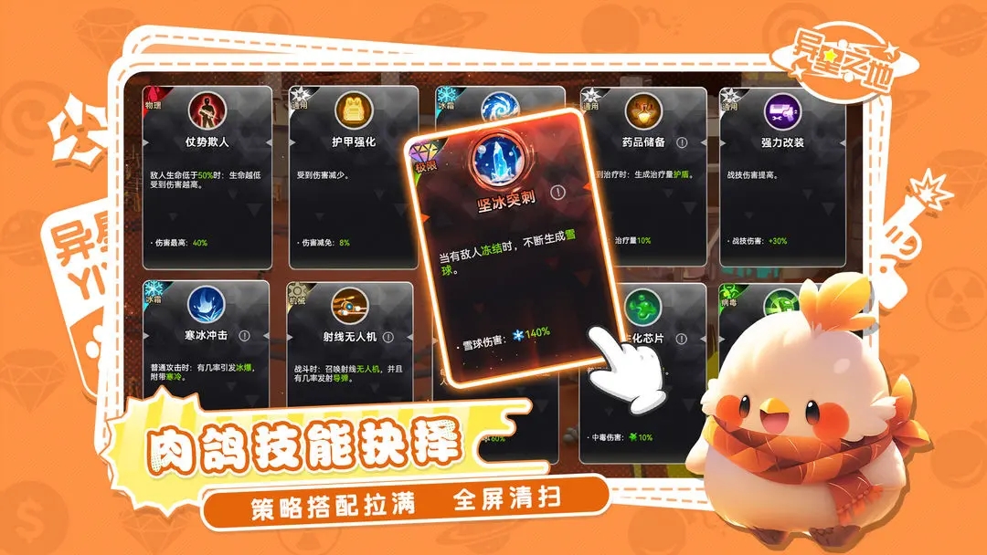 每次升级会出现随机技能提升,上百种技能组合,永远停不下来;