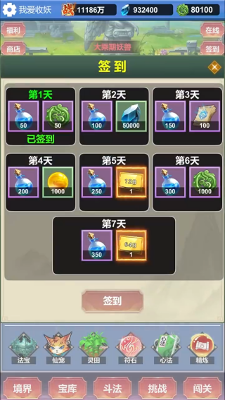 1、进入游戏就能完成签到,获得每日奖励,有着丰富游戏资源。
