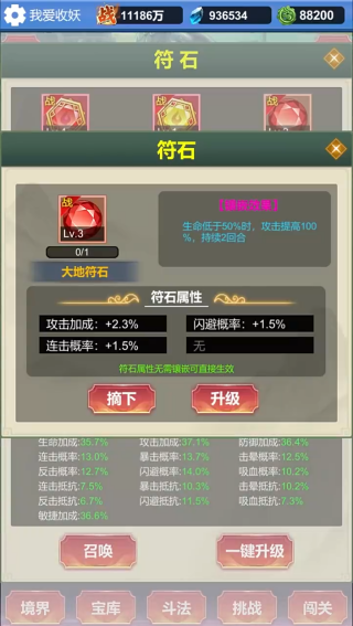 3、可以获得各种各样的符石,用来增强妖宠能力。