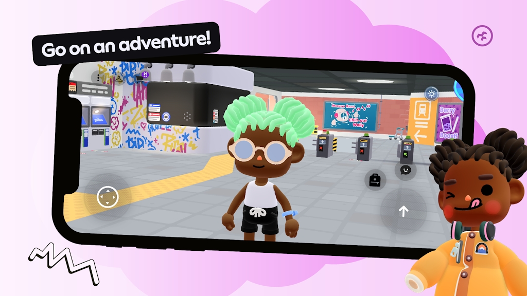 表达自我,闲逛并探索!创建完全独特的角色并开始自己的冒险。你可以用跳舞或挥手等表情来表达自己,与其他玩家聊天,并尝试拥抱和背驮式骑行等合作表情。