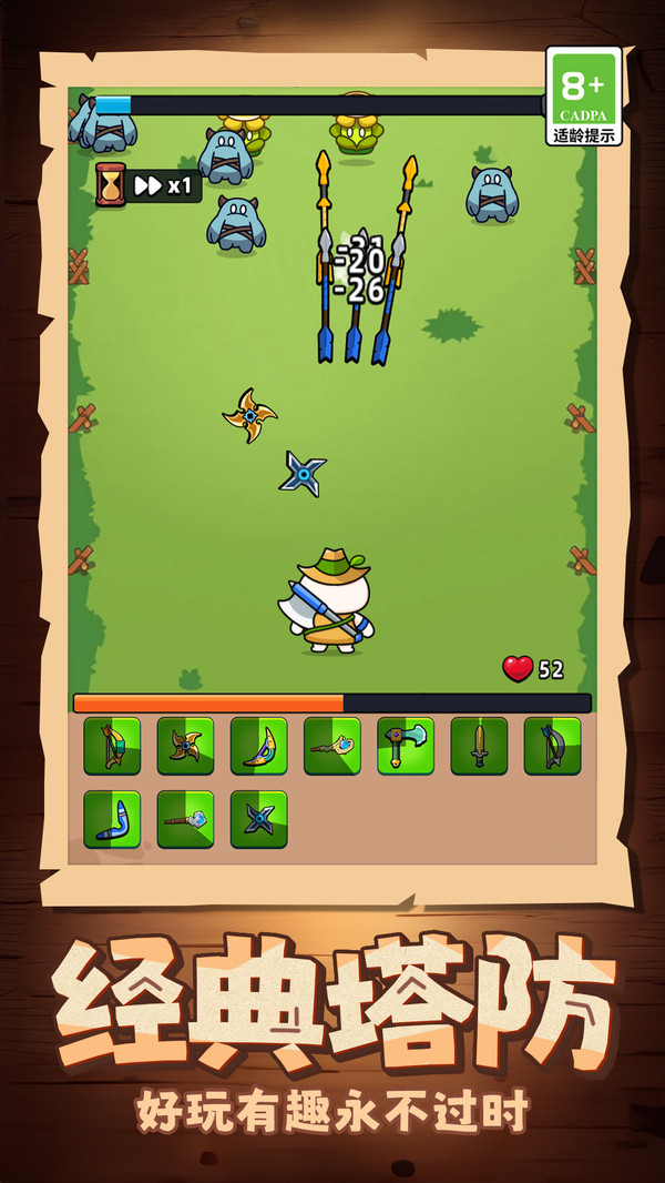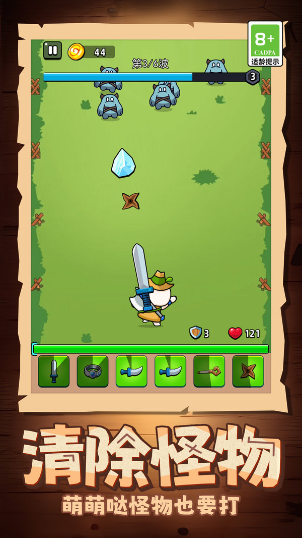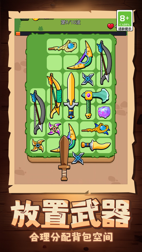 3、每一波敌人的进攻结束后,你都可以对装备进行整顿,相同的可以合并升级。