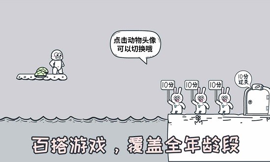 动物园大冒险是一款脑洞闯关手游。这款游戏采用了简单的线条手绘画风,色调以黑灰白为主,十分简约。游戏中共有兔子、长颈鹿、大象、老虎、乌龟五种小动物可以选择,它们都有特殊的能力可以在关键的时刻发挥重要作用哦!玩法也很简单通过点击屏幕方式就能够进行各种挑战,可以化解许多的谜题和陷阱,让小动物顺利逃生。卡通的游戏场景,而且过程非常解压。操作过程简单,当然需要玩家的逻辑思维能力去解开所有谜题,每一次挑战时出现的难题与陷阱都不同。