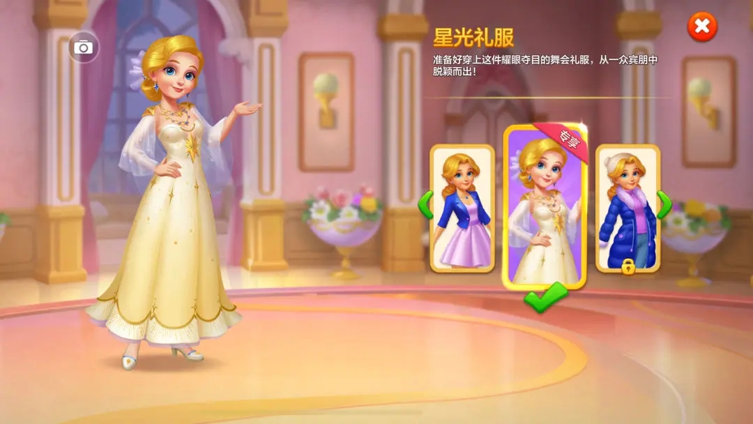 2、点击庄园中待修缮区域,消耗星星兑换家具,逐步修复破旧房间,恢复城堡昔日辉煌。