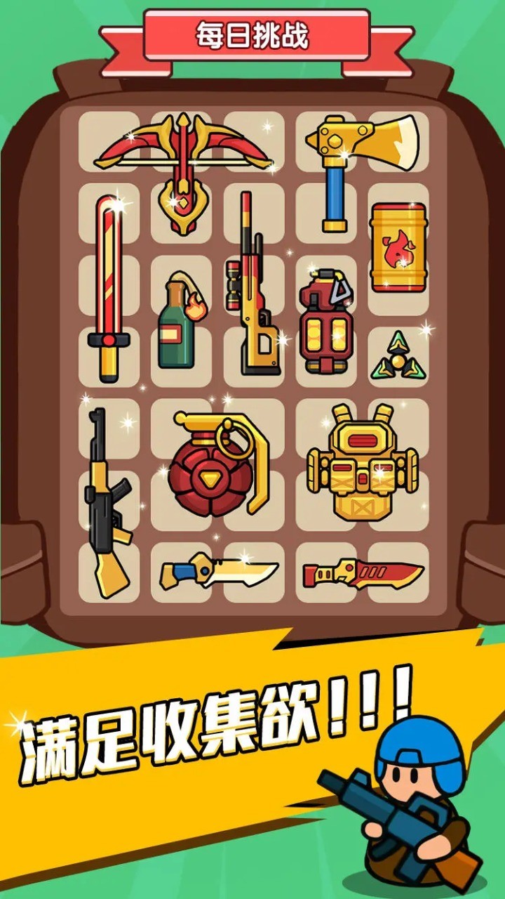 同为背包类玩法,战斗内容和经典肉鸽的选项功能基本相同,在物品类别上融入了一些现代化枪械,更符合题材的设定。