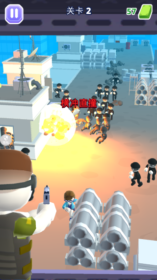 1、通过点击屏幕中的敌人,即可射出子弹进行击杀,掩护女孩登上飞机即可获胜。