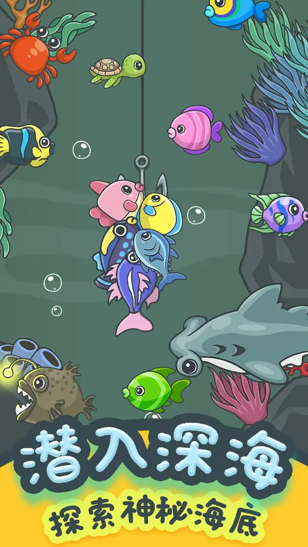 2、点击释放鱼钩下水后,左右滑动来吊起更多的鱼,吊起来的鱼可以换算收益。