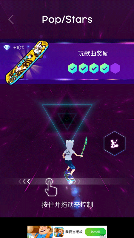 节奏骑士是一款融合了未来科技元素与动感节奏的音乐游戏,玩家将扮演一名穿梭于虚拟网络世界的极限冲浪者,在由霓虹灯效构建的赛道上,随着节奏强劲的电子音乐节拍,利用高超的操作技巧躲避障碍、收集能量球并解锁炫酷技能,展开一场场视觉与听觉的双重盛宴,体验前所未有的沉浸式音乐冒险之旅。