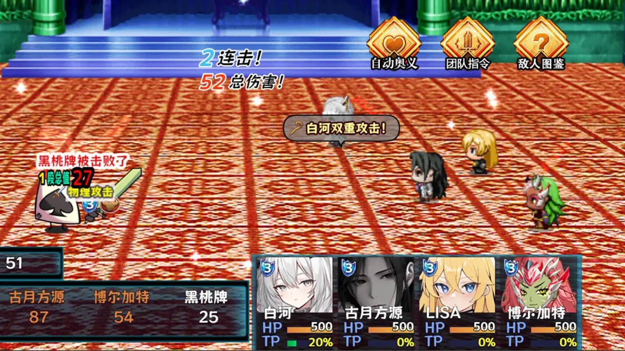 3、魔法攻击治疗全体队员,物理攻击能抗揍能输岀,这里可以通过塔罗牌来召唤队员,执行预言的塔罗牌将会被消耗,请慎重选择;