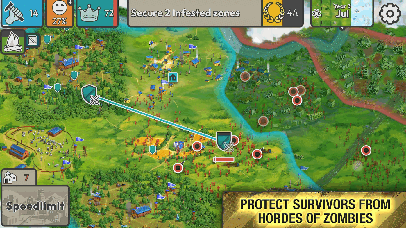 3、根据地形选择定居点位置,靠近资源点可减少运输损耗,同时注意防御布局以应对僵尸夜间袭击。