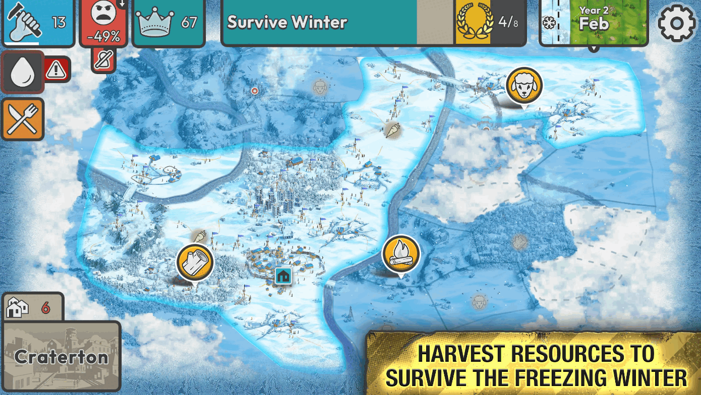 4、平衡人口增长与资源产出,升级房屋与设施提升效率,逐步解锁医疗、研究等系统完成全成就目标。