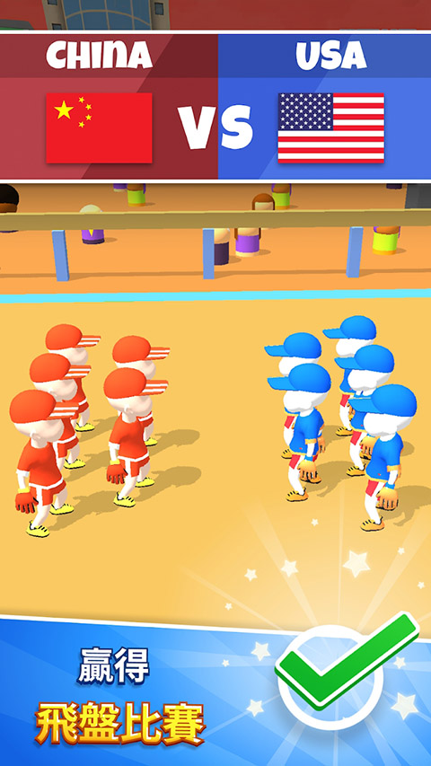 2.游戏还原了趣味的扔飞盘比赛你可以自由的加入比赛,选择好合适的机会并顺利的穿越过对手。魔性的闯关挑战模式随着关卡的深入难度会增大,你需要秀出你独特的操作技巧解锁心得场景。