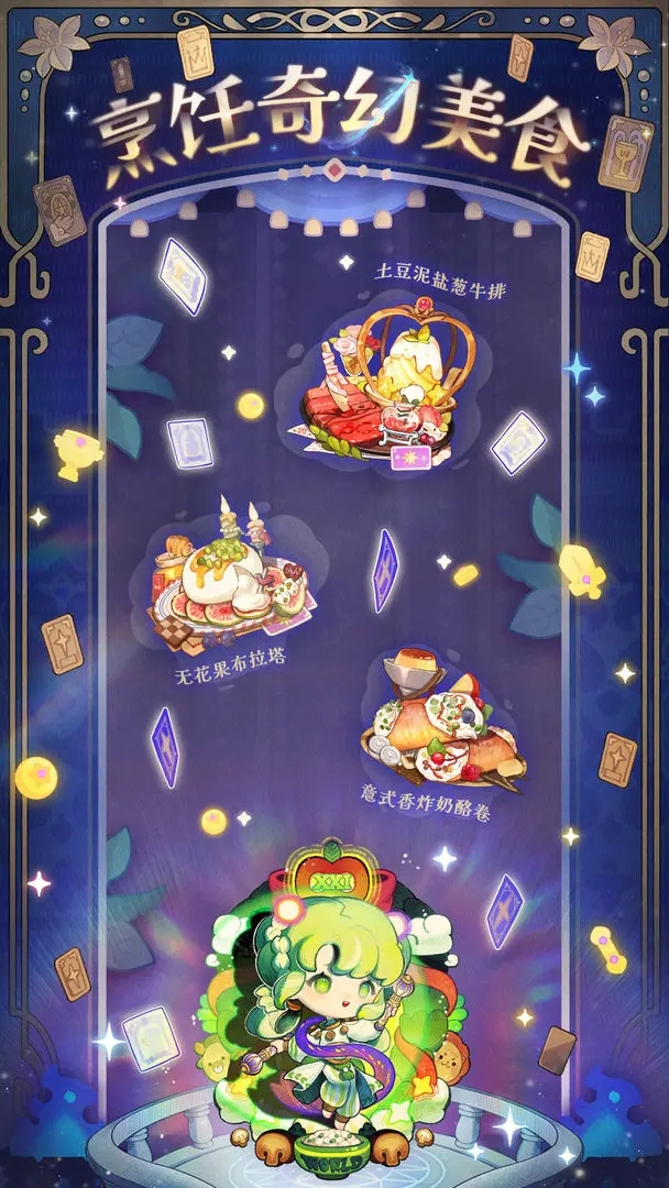 活动期间开放星轨密文奖池,奖池内包含7个新厨师,1个礼包厨 ,8个新菜谱 ,6套新厨具及1整套餐厅装修