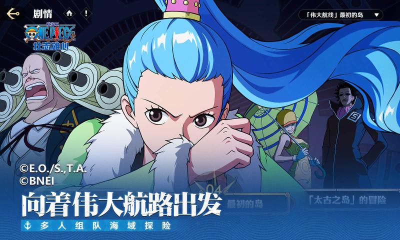 1、进入游戏,完美还原经典漫画场景,经典角色悉数登场,选择角色开始冒险。