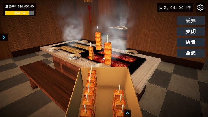 我的关东煮小铺是一款模拟经营类游戏,玩家在游戏中扮演一位创业者,经营一家主打关东煮的美食店。游戏以3D立体风格呈现,让玩家仿佛置身于繁华的街道上,从一张简陋的小餐桌起步,逐步打造属于自己的美食王国。游戏不仅还原了街头美食的文化魅力,还通过多元化的经营机制展示了小企业家在激烈的市场竞争中的成长轨迹,玩家需要使用左侧虚拟摇杆移动角色,靠近物品时会出现交互选项,可执行相关操作,如移动家具、采购食材等,随着游戏的进行,玩家可以不断扩张经营规模,提升设备等级,优化服务,提高整体运营效率。