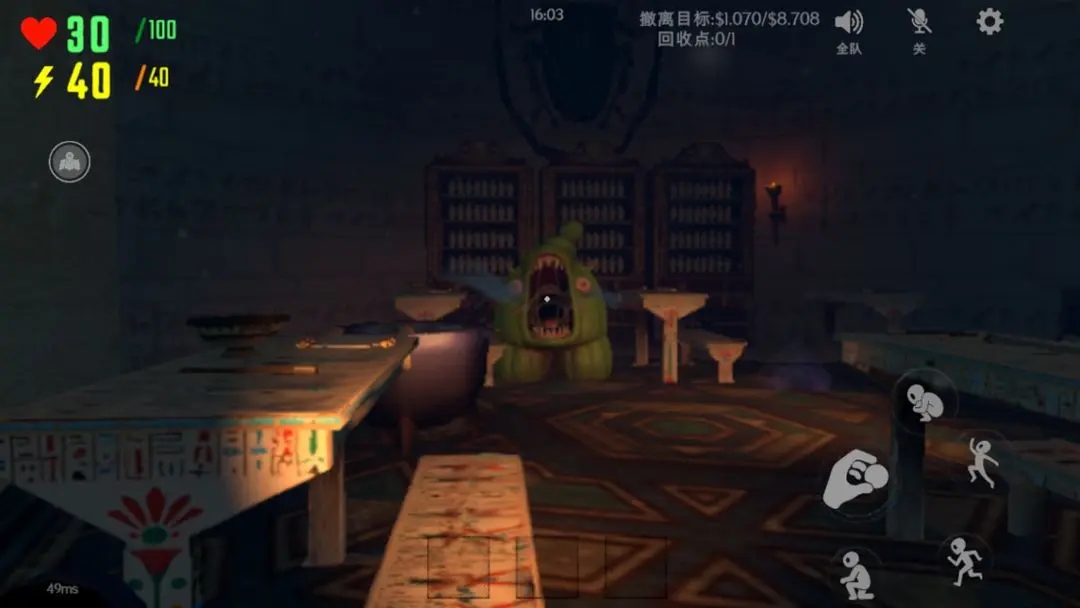 3、在场景中进行搜捕物资,找寻高价物品进行回收,达到目标即可撤离。