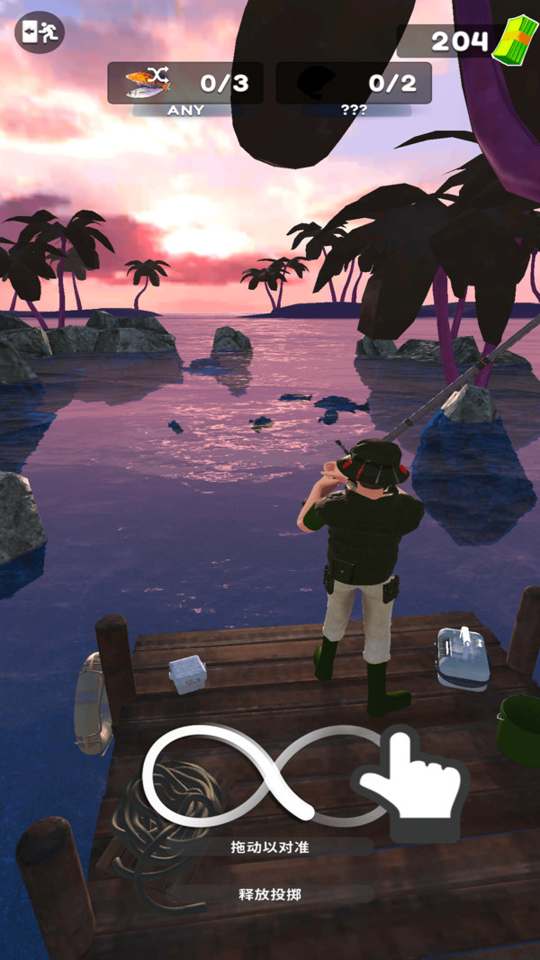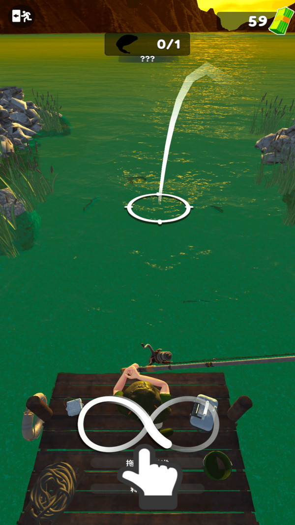 1、点击滑动屏幕,选择你的鱼竿落水点,进行钓鱼。