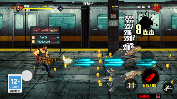 3、左侧轮盘移动人物角色,右侧控制攻击以及技能,组合连击消灭关卡敌人。