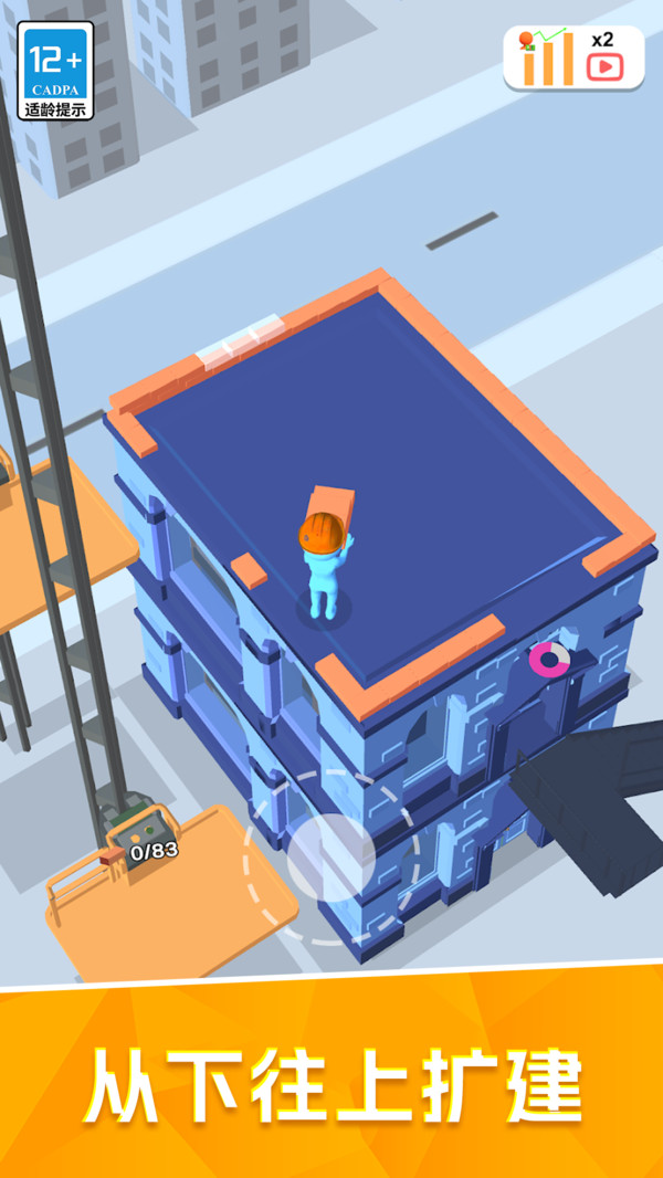 1、不断的搬运砖块到你的旅店上方,搭建更多层数的旅店进行经营。