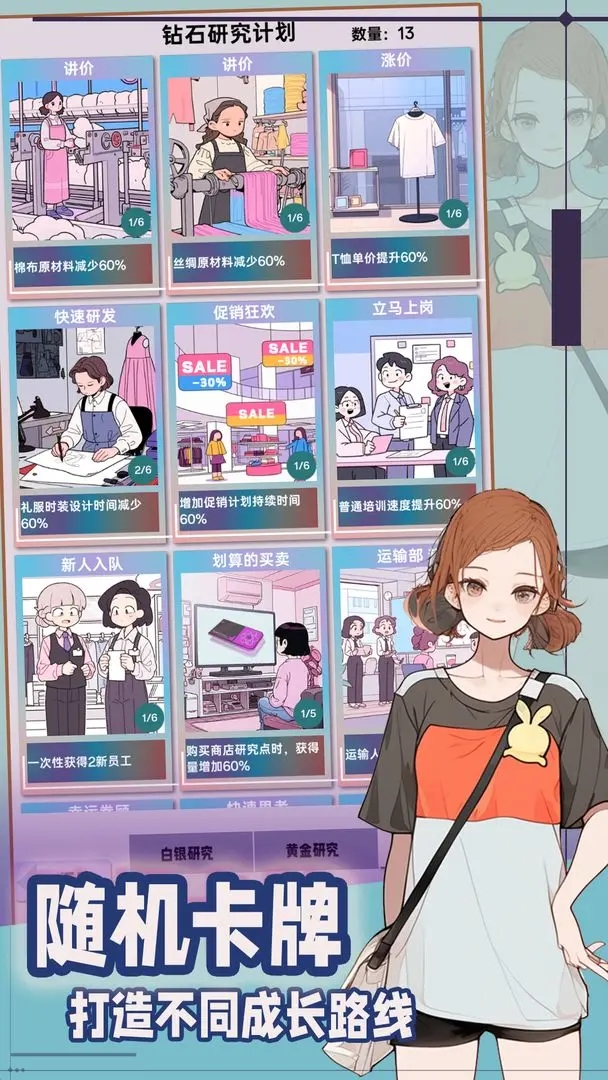 时尚帝国崛起是一款融合模拟经营与肉鸽卡牌元素的放置类游戏,带你进入充满创意与商业博弈的时尚世界。你将从一间小小的工作室起步,逐步打造属于自己的时尚帝国。游戏以策略为核心,玩家需规划生产、招募团队、投资研发,并在全球拓展业务。同时,独特的肉鸽卡牌机制为经营增添了随机性与深度,使每一次决策都充满变数。无论是设计潮流服饰、应对市场波动,还是布局全球总部,玩家都能体验到时尚行业的魅力与挑战。这不仅是一场商业竞赛,更是一场关于创意与智慧的时尚冒险。