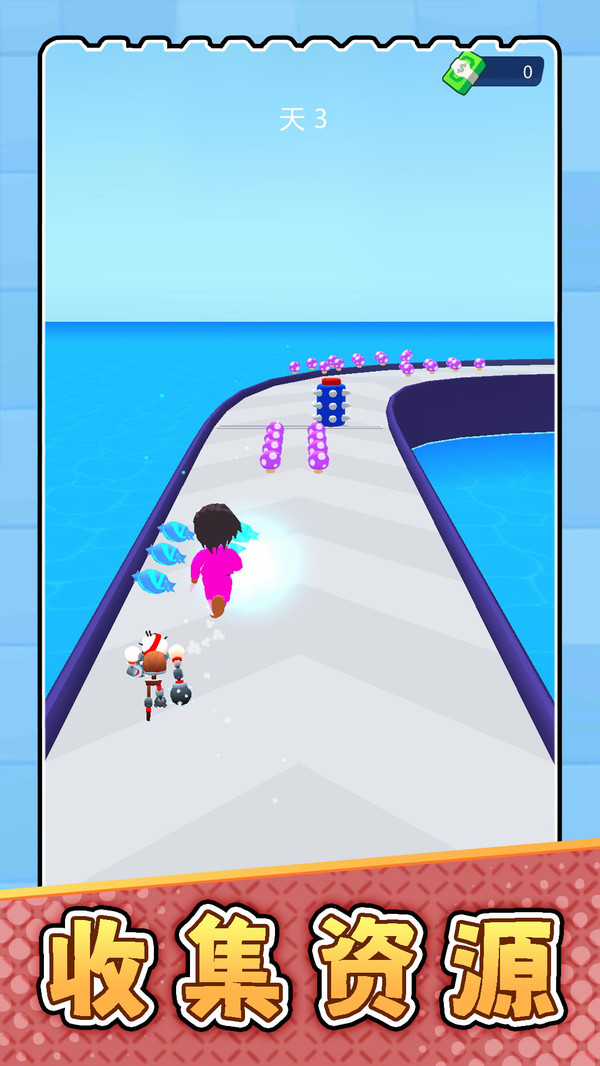 1、通过游戏中每一天的跑酷旅程,收集各类宠物蛋以及资源材料。
