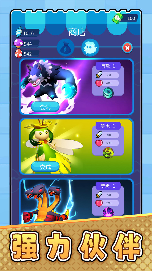 1、收集数十种萌宠,每只宠物拥有专属技能,搭配不同角色形成独特流派。