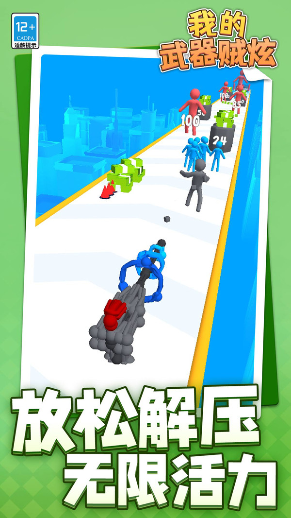 我的武器贼炫是一款创新性合成闯关射击游戏,玩家需要通过集结众多小人,组合成各种强力武器来突破关卡挑战。游戏将人员收集与武器合成完美结合,既考验策略布局又充满操作乐趣。随着关卡推进,玩家可解锁更多小人类型和武器形态,体验从小队作战到大军压境的成长历程,最终打造出所向披靡的终极武器。用不断壮大的炫彩武器劈开障碍、斩断机关,冲向终点夺得胜利。