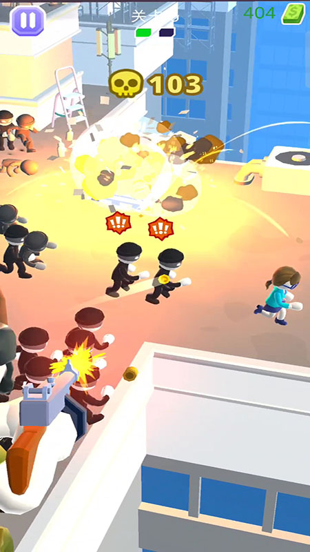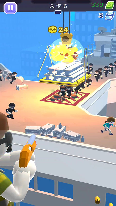 2、点击楼顶的油桶成功的消灭大量的敌人,营救出人质。