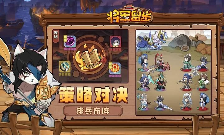 将军留步是一款经典三国主题的冒险回合制游戏,三国名将已化成喵星军团,打造独特的战斗阵营,灵活的搭配不同的武将开启新的冒险活动,自由的争霸热血对战,一场前所未有的三国冒险就此展开,以其独创的"喵武将"设定和深度的策略玩法,为玩家打造了一个既可爱又充满战略趣味的三国世界。在这里,你不仅是主公,更是一群萌系猫将的统帅,在乱世中书写属于自己的可爱传奇。