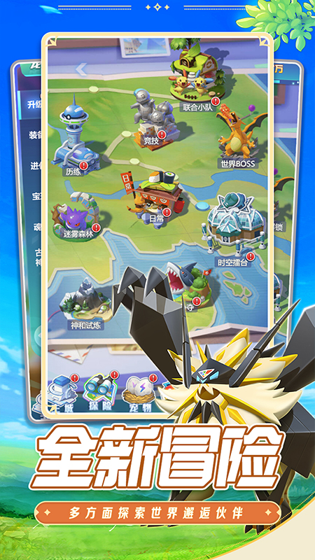 3、深度养成系统涵盖精灵升级、天赋树、装备镶嵌及亲密度培养,打造个性化战队。