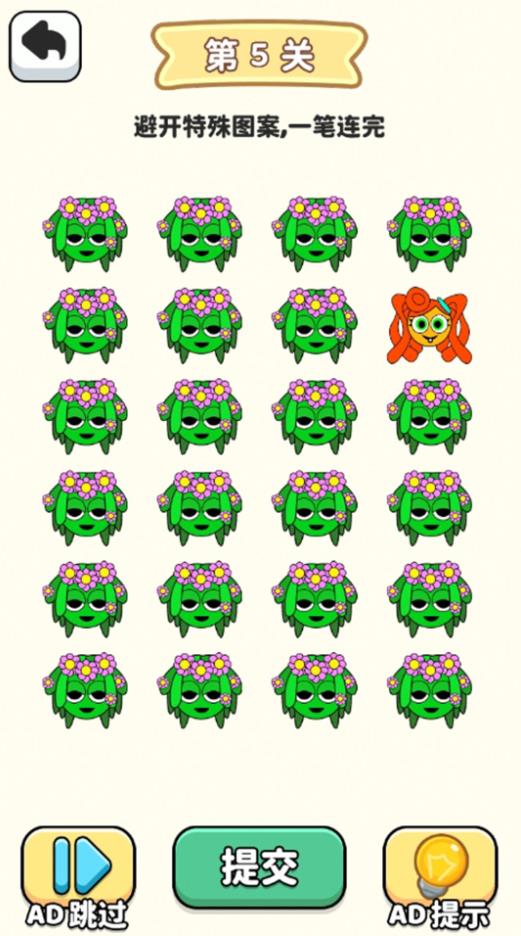 1、只需手指滑动,画出一条连贯的线段,将所有分散的元素一个不差串联起来。