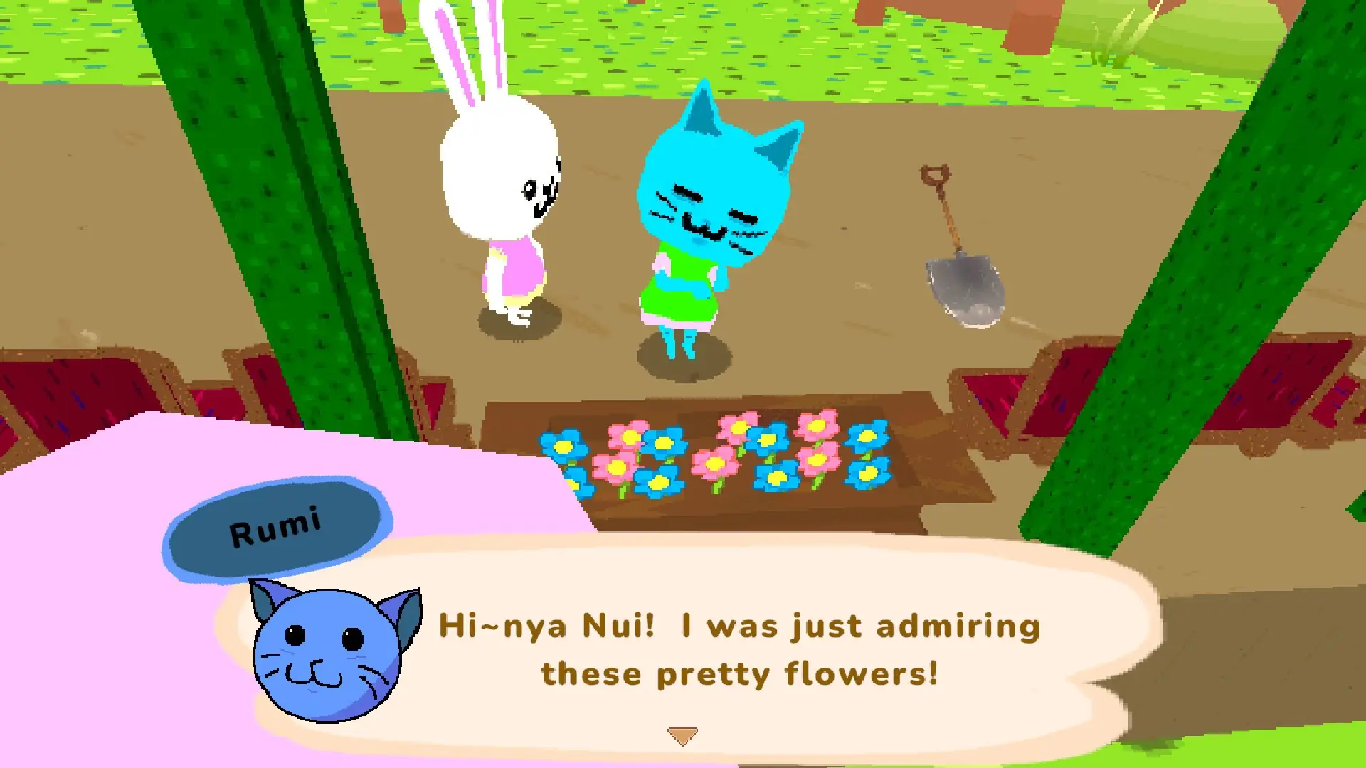 1、控制Nui在小镇自由移动,与动物角色对话获取任务线索与背景信息。