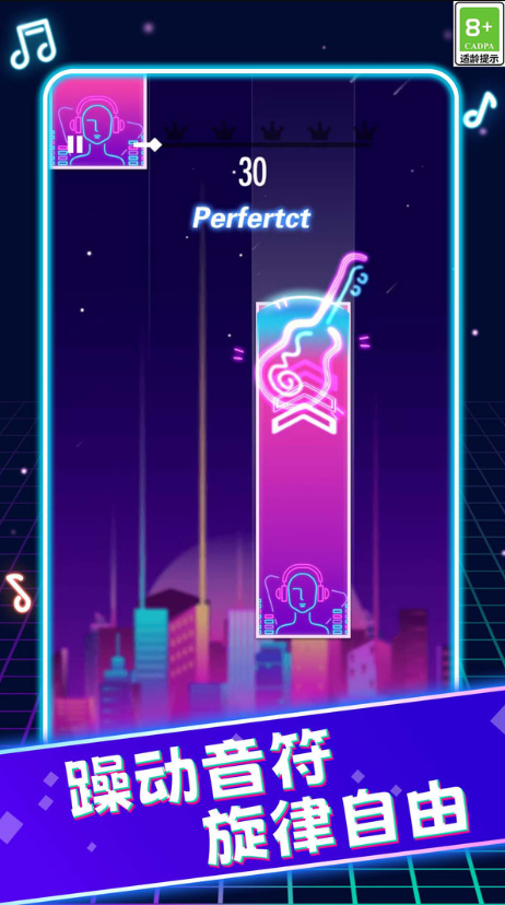 2、沉浸在欢快旋律与指尖跳跃的乐趣中,完成一个又一个高难度的节奏关卡挑战。