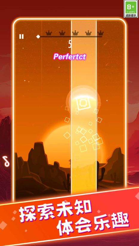 2、根据节奏块的坠落,灵活的敲击屏幕,完美进行点击。
